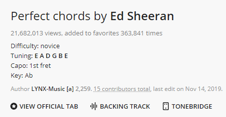 Ultimate-guitar is een website die je als ondersteuning kunt gebruiken bij het spelen van liedjes.